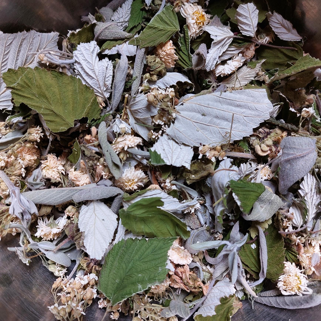 Composition : camomille romaine*, framboisier*, lamier blanc*, achillée millefeuille*, sauge*.